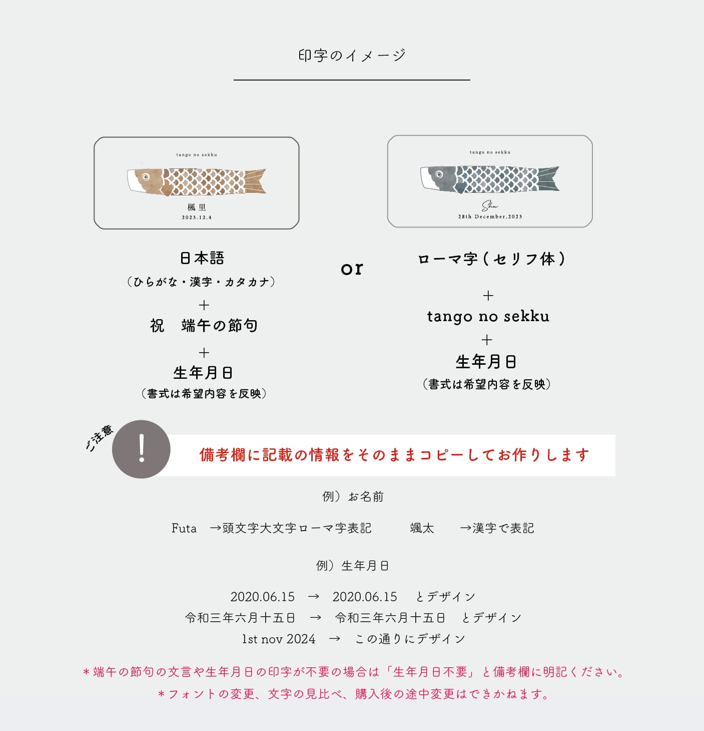 「kodomonohi」など,ご希望を備考欄に記載ください。