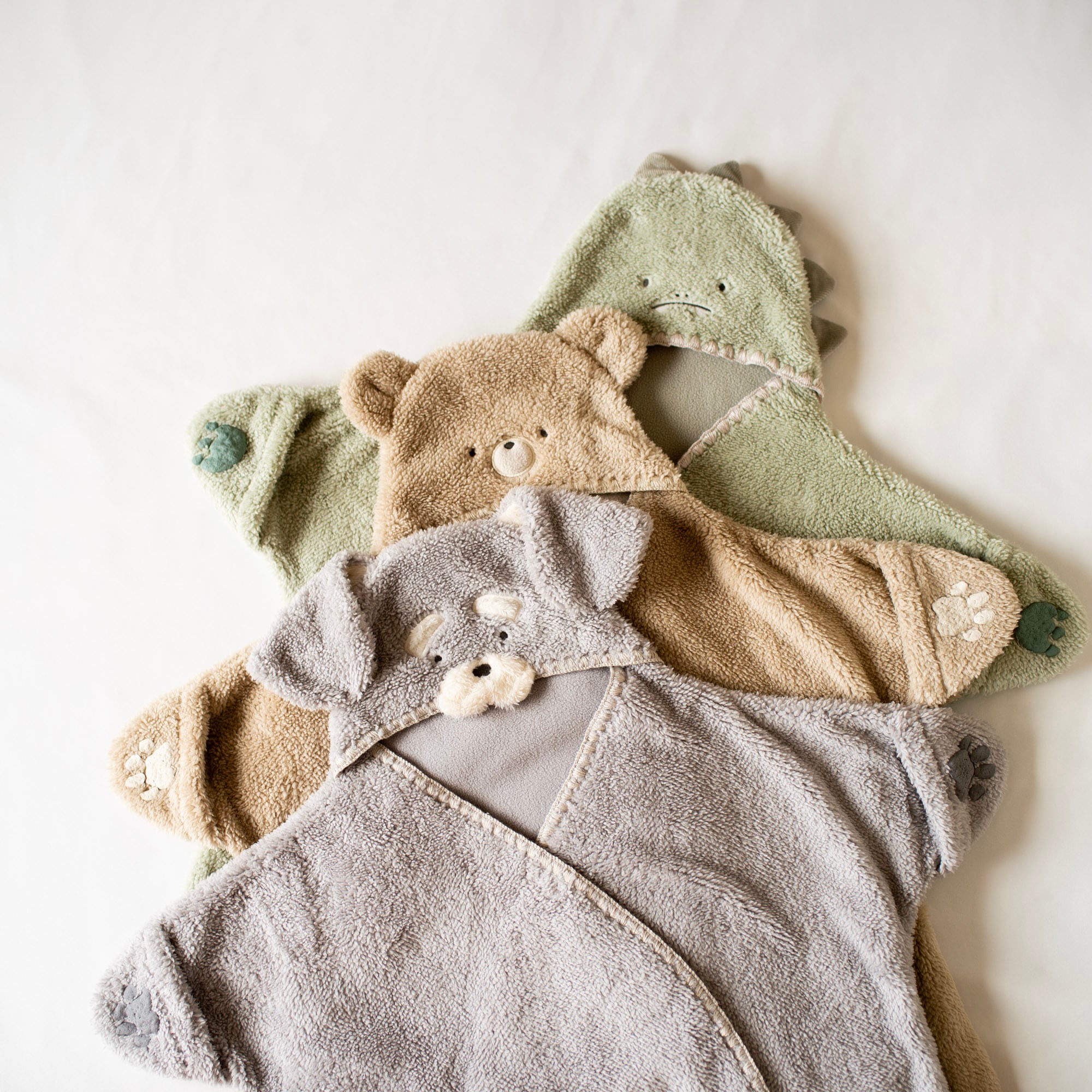「素朴な表情のアニマルに癒されるおくるみ」