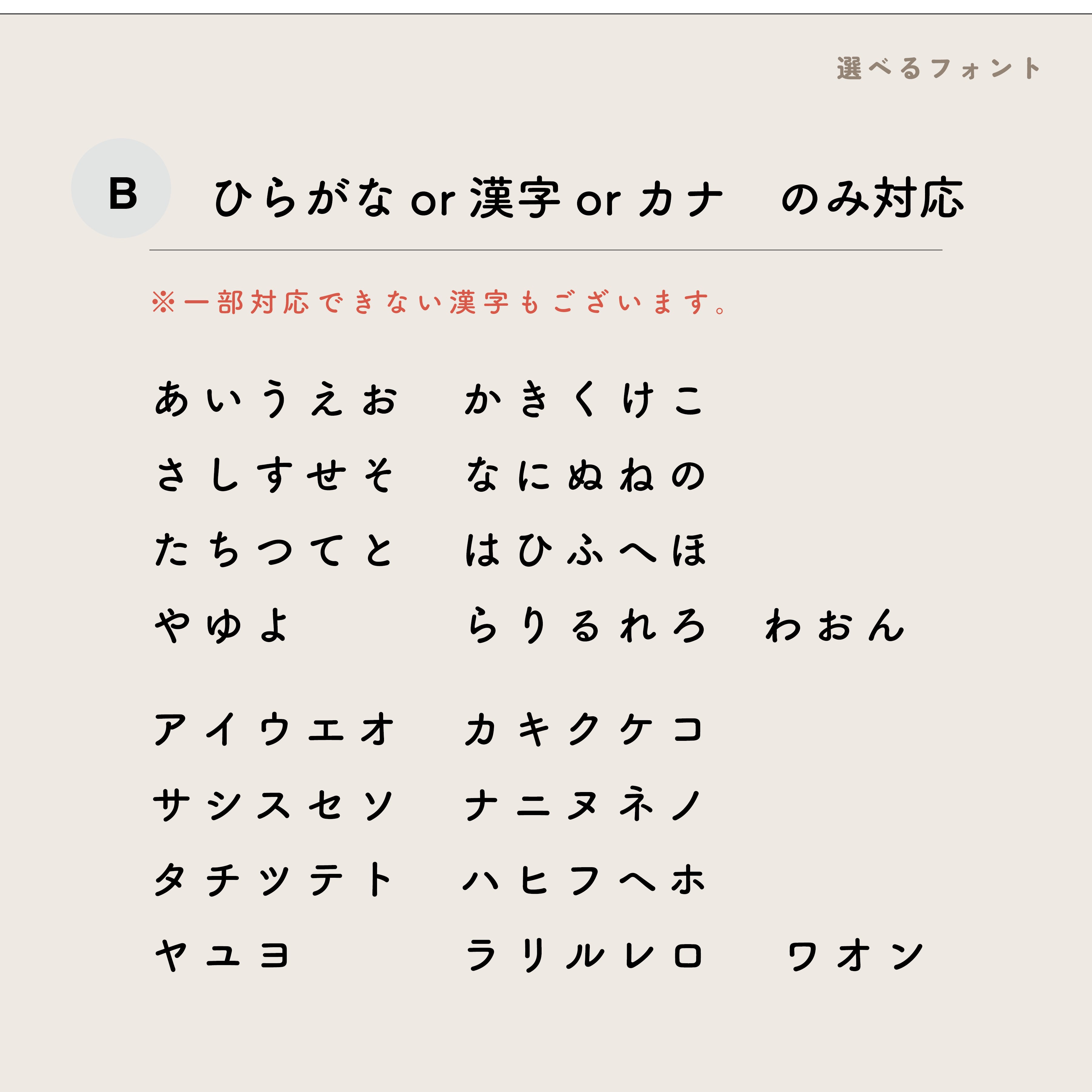 名入れについて/購入時のオプションバーに以下を明記願います
