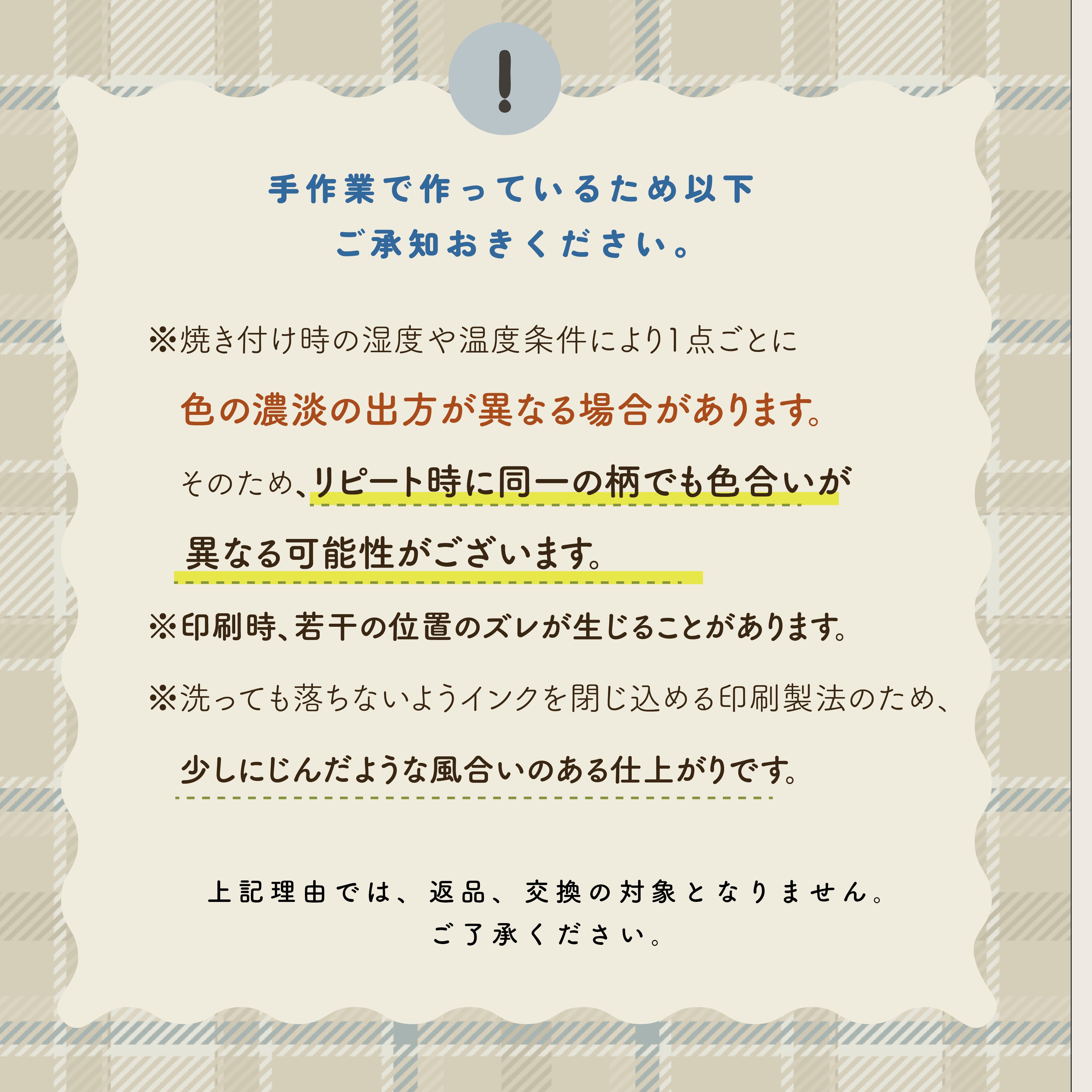 ※受注制作のため1点ごとに焼き付けております。若干の色の出方
