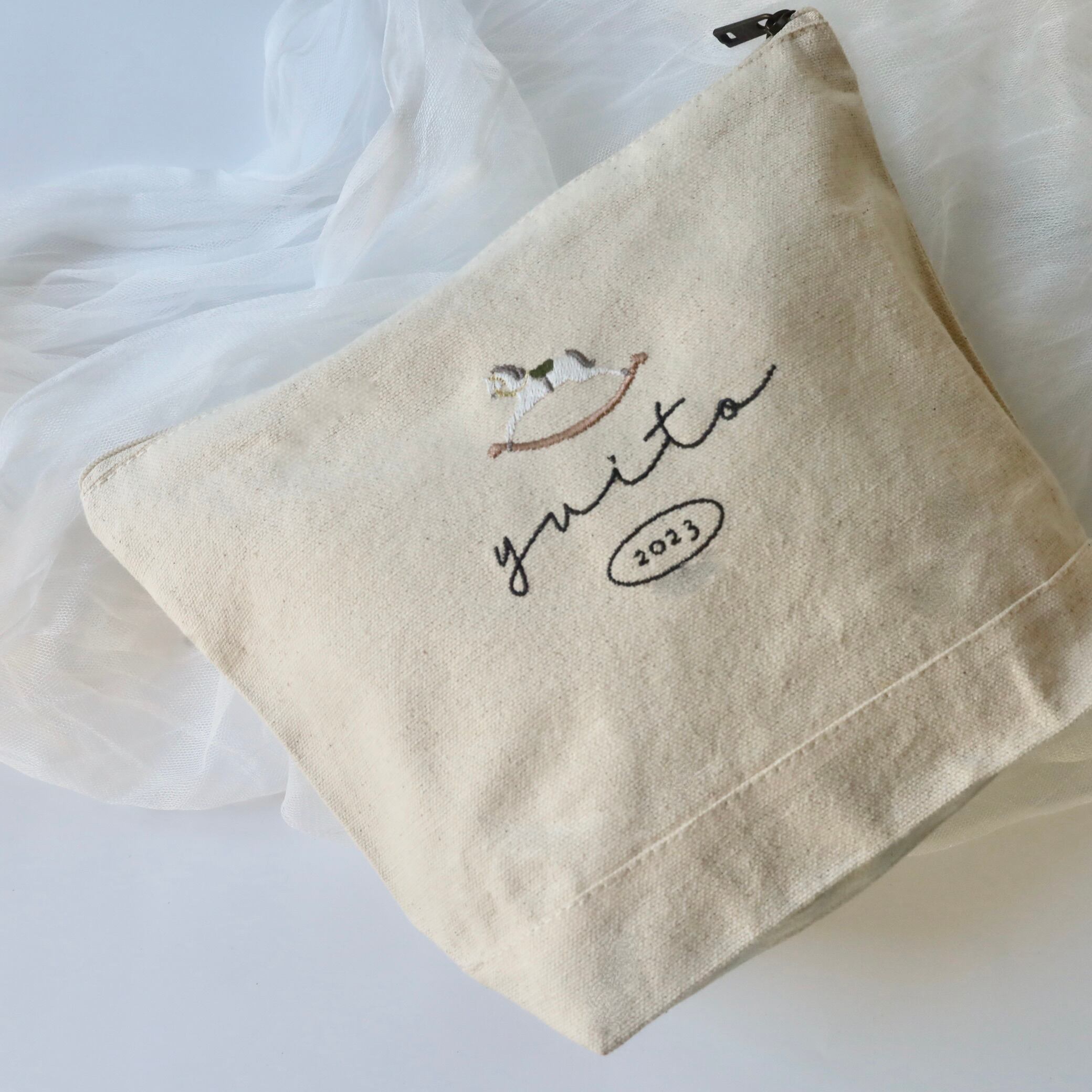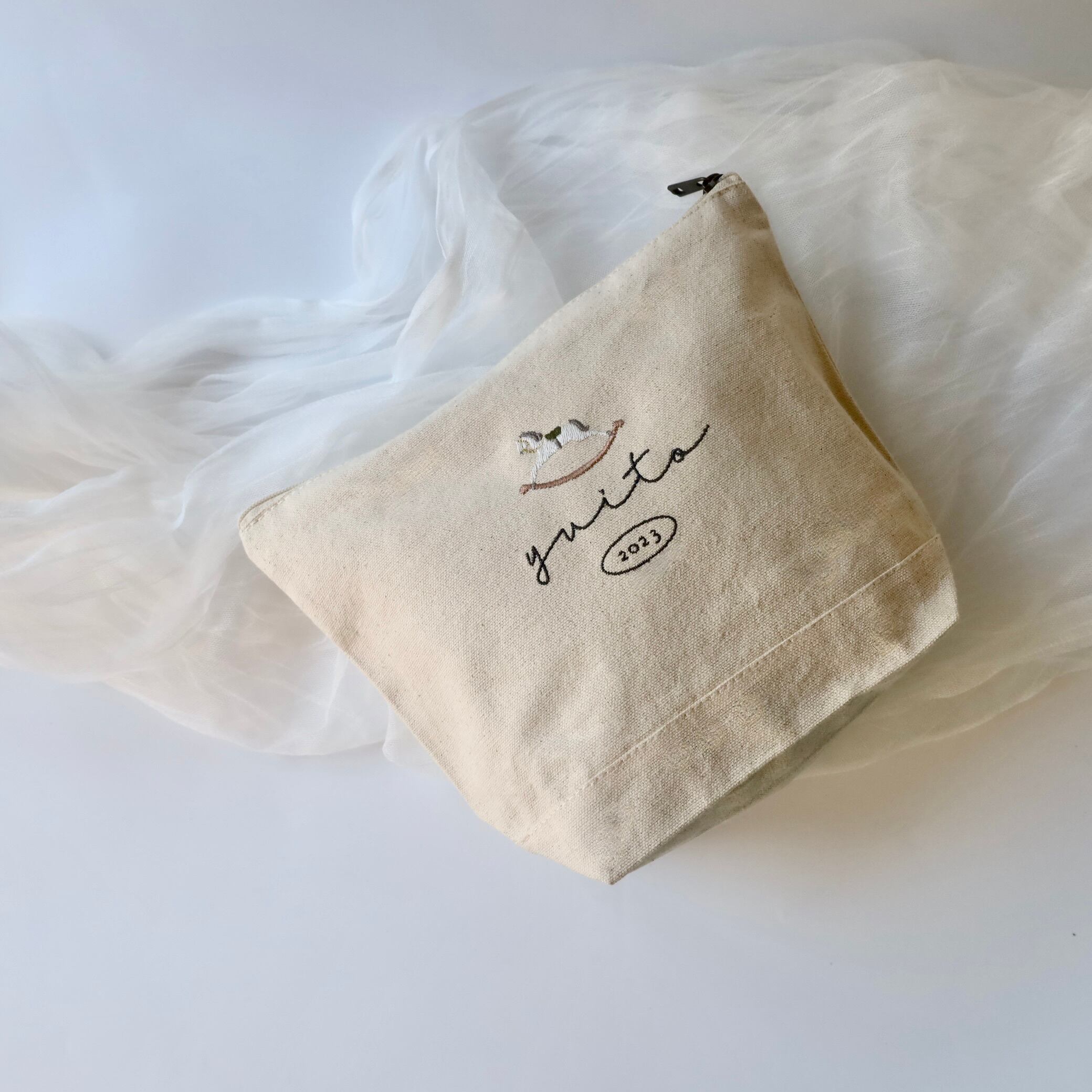 刺繍の上質感伝わるポーチに