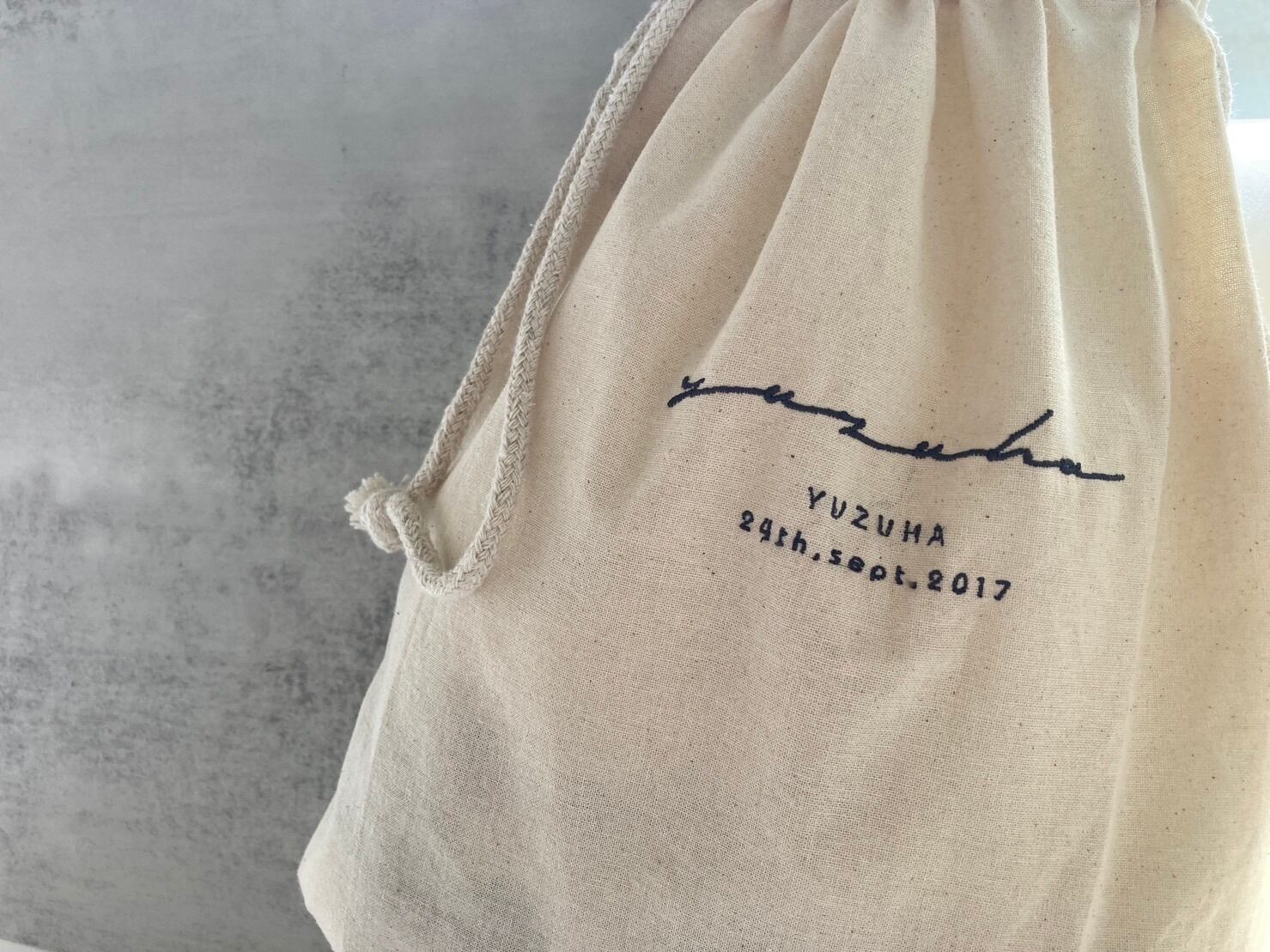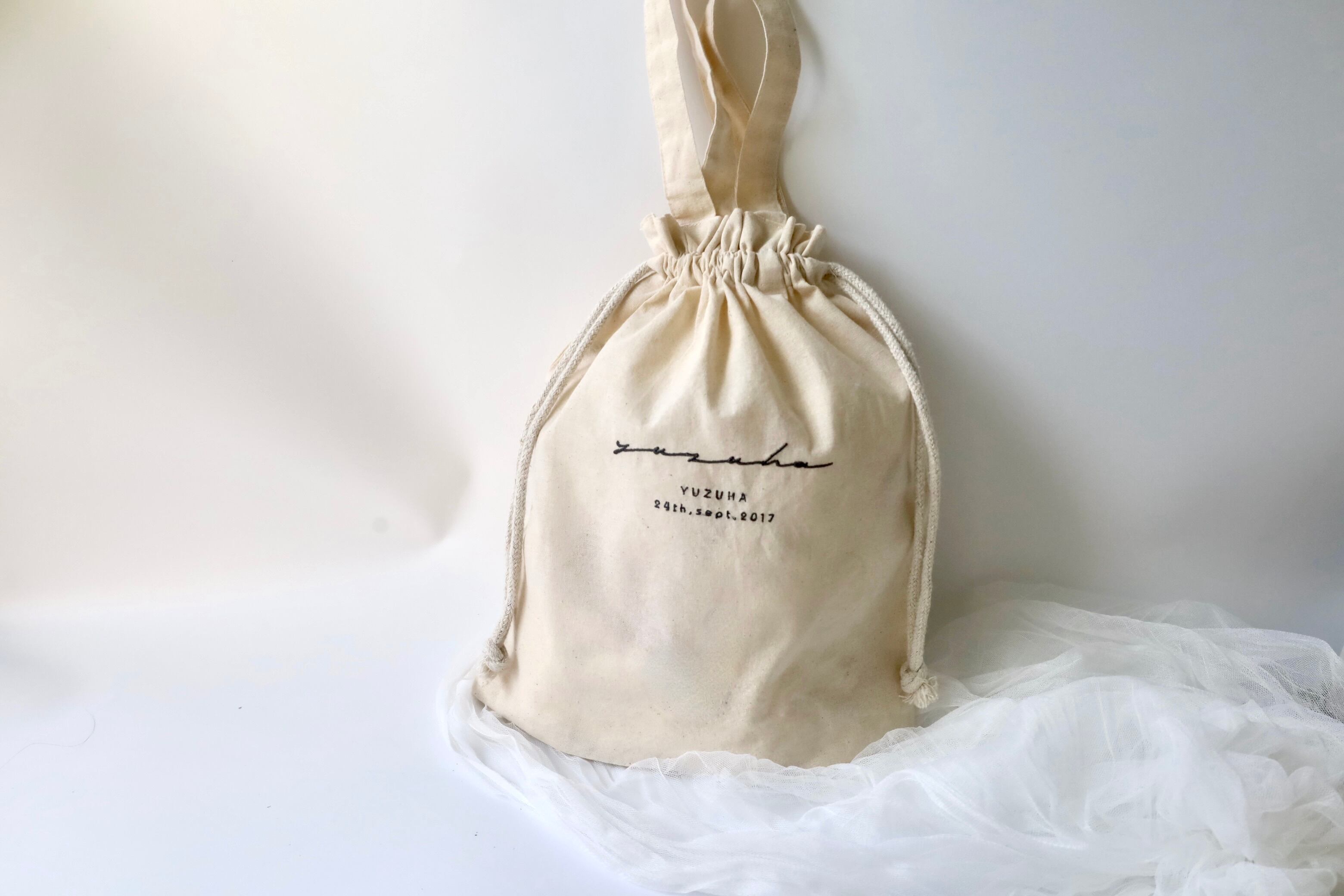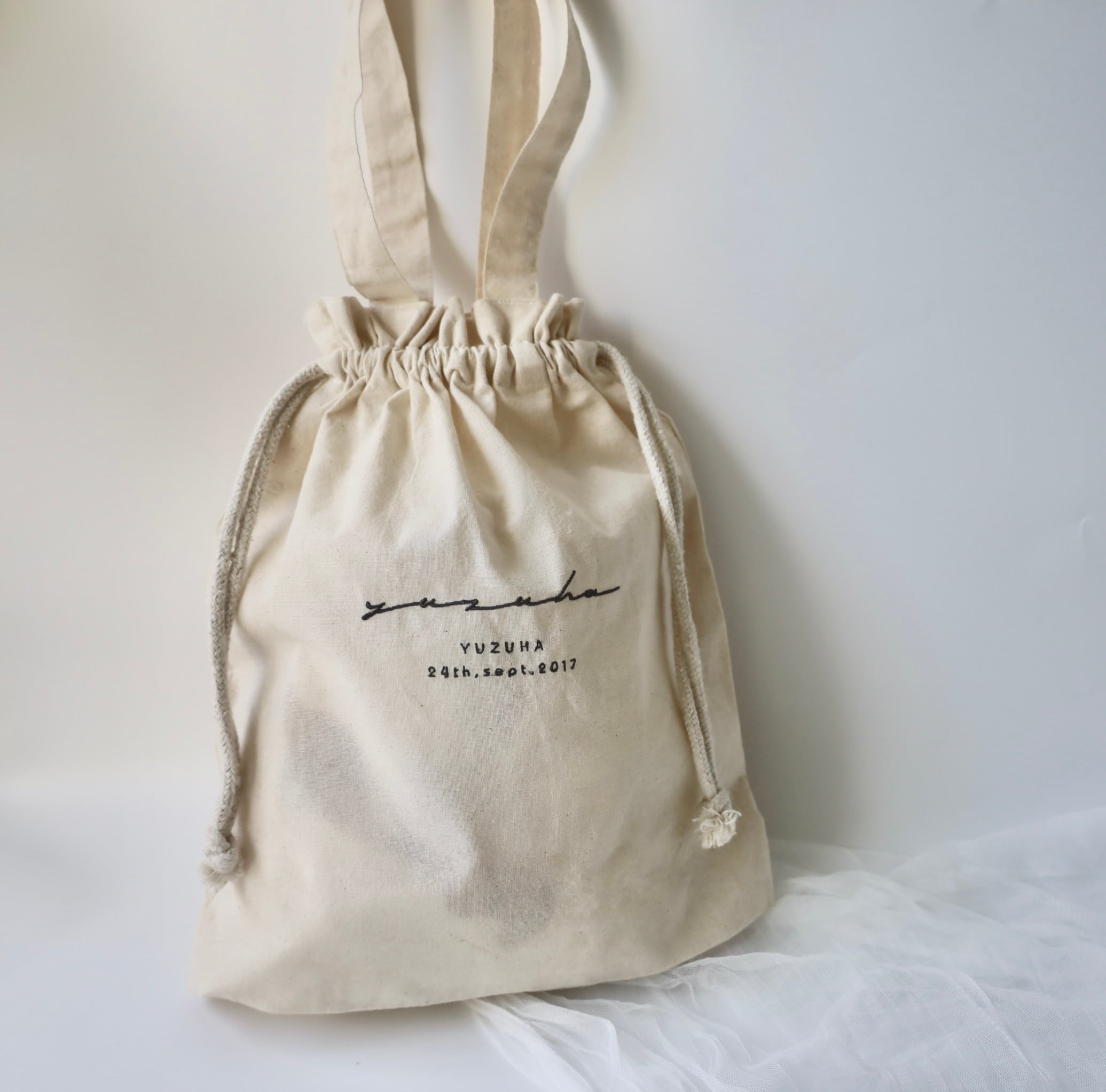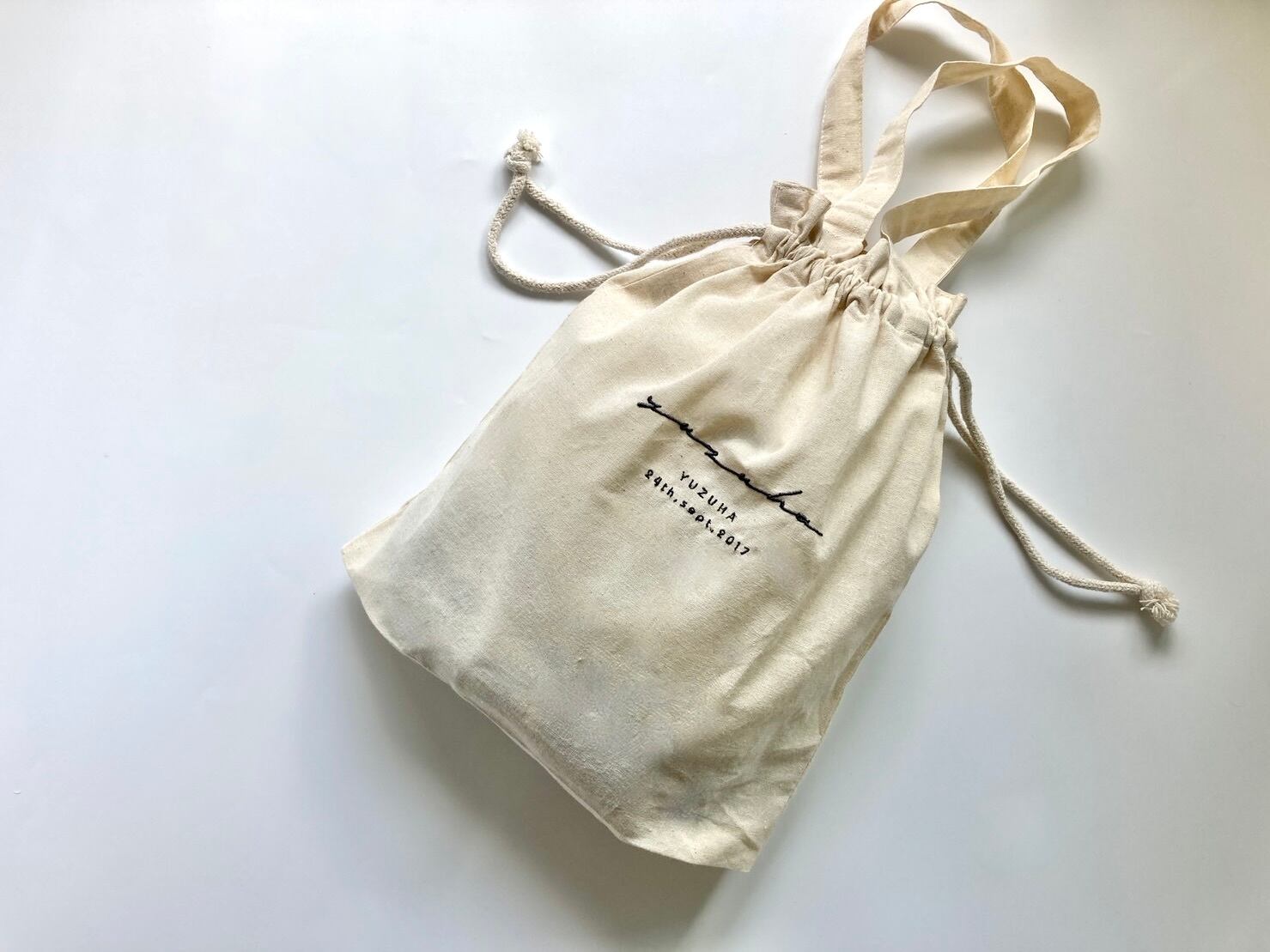 重宝する取手付きの巾着。