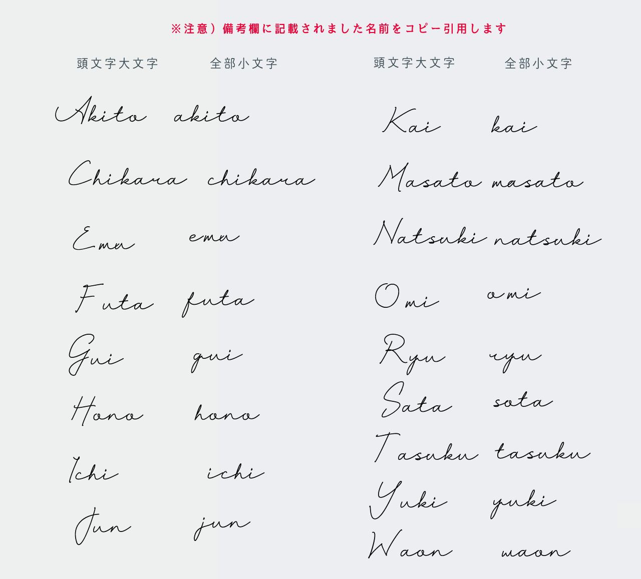 【フォントについて】ローマ字:筆記体 漢字・ひらがな:明朝体