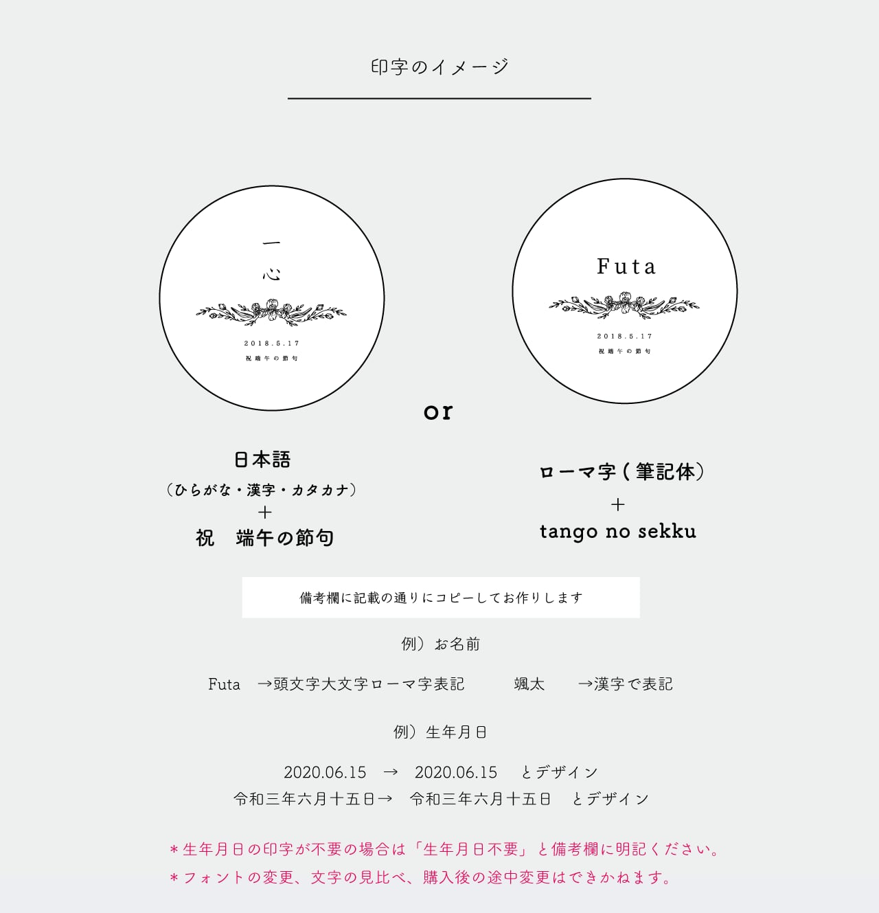 ※情報の抜けや、購入後の内容変更はミスにつながるため、お買い直し頂きます。