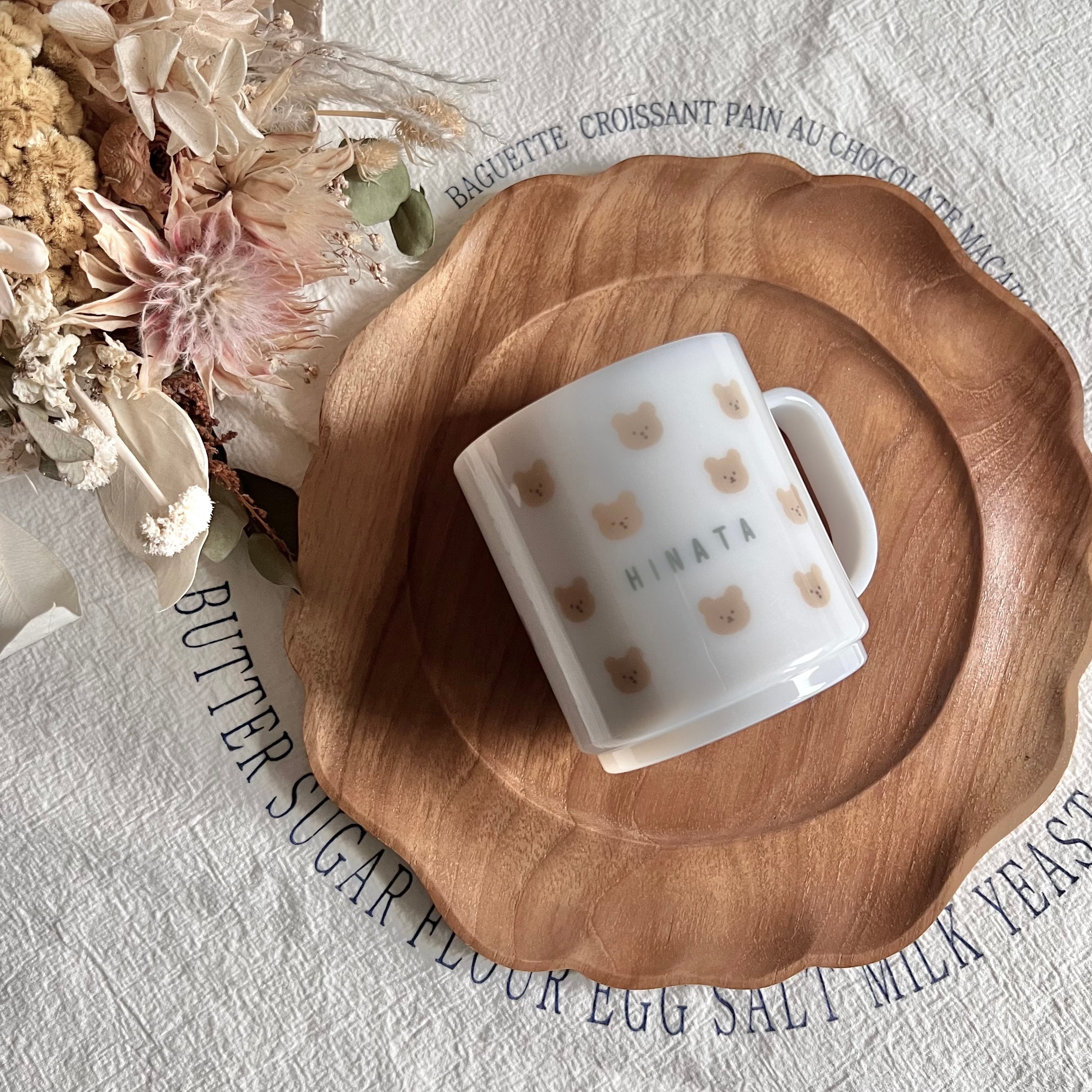 ゆるい表情が愛らしいくまにお名前が入ったデザイン。