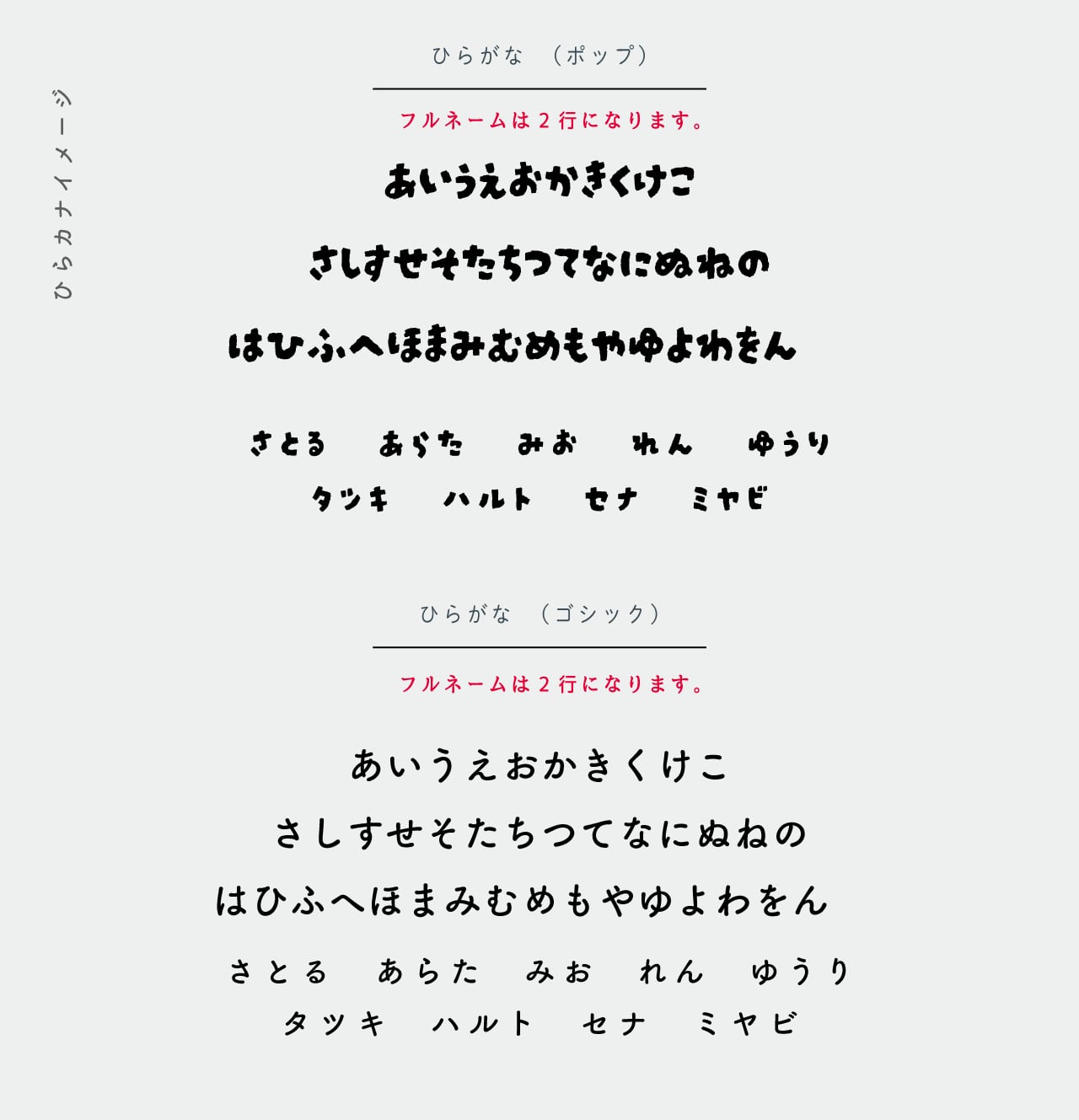 例)はなこ →ひらがな印刷