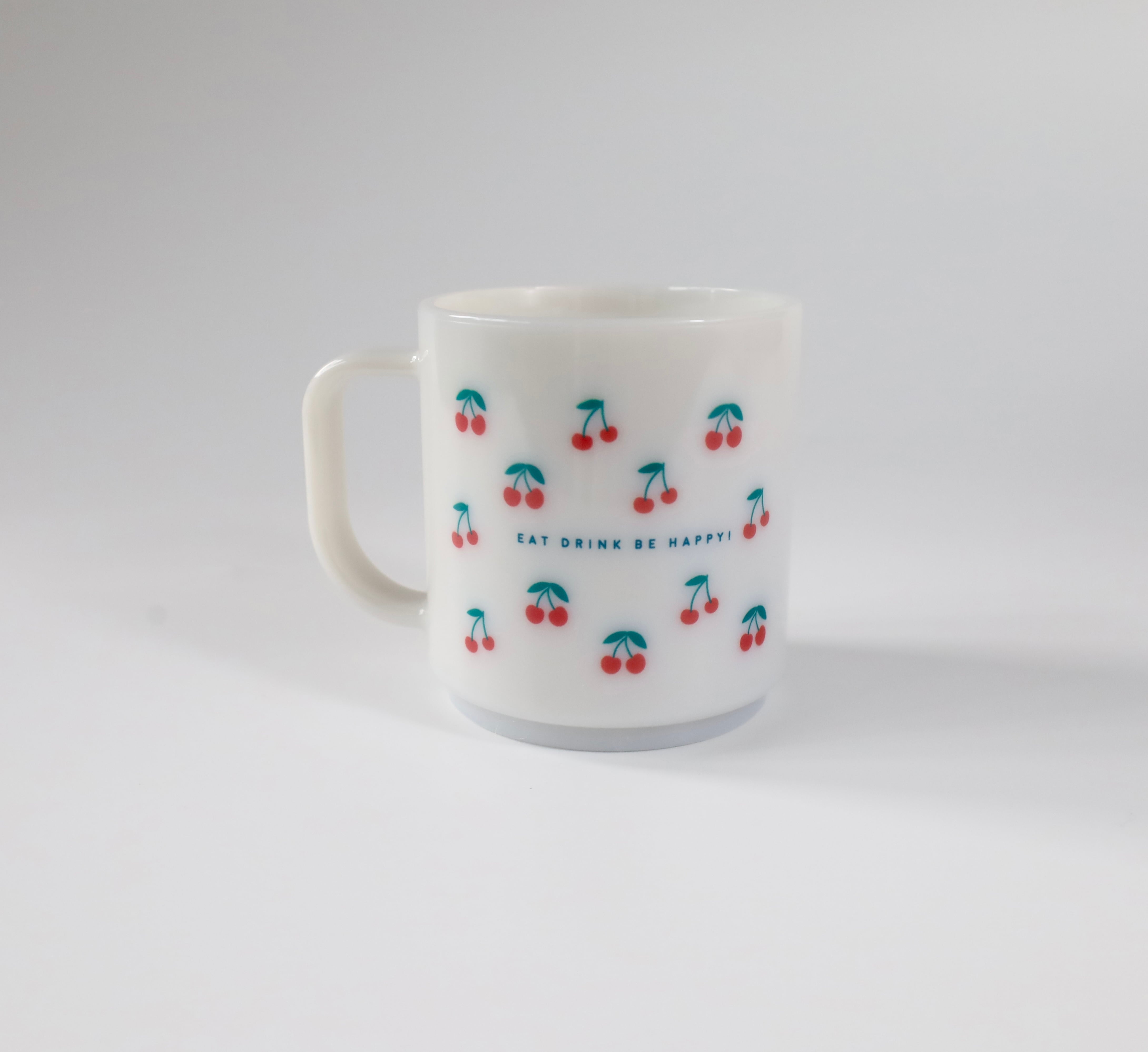 片面には「eat drink be happy!(食べて 飲んで 幸せになろう)」