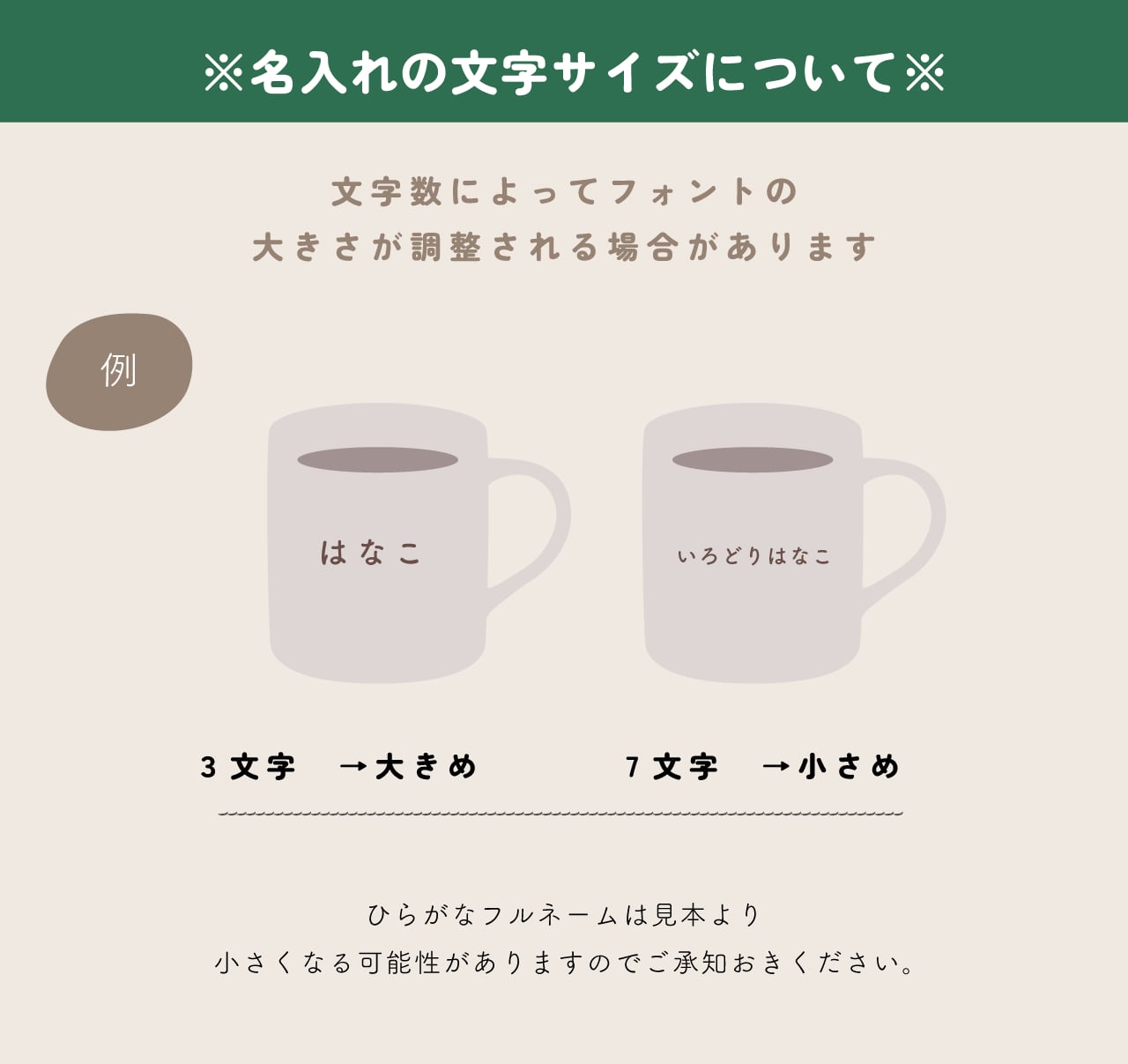 名入れについて/購入時のオプションバーに以下を明記願います